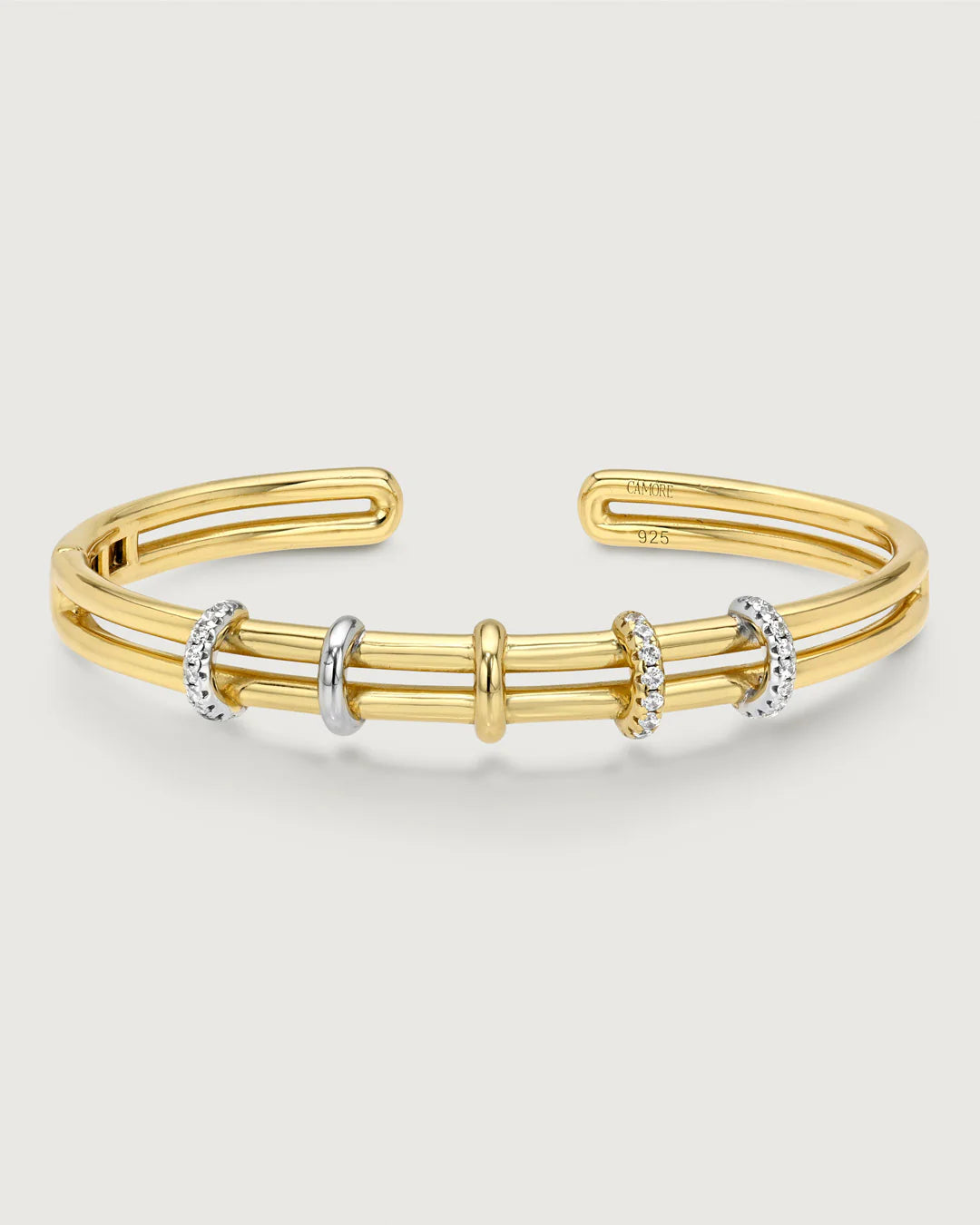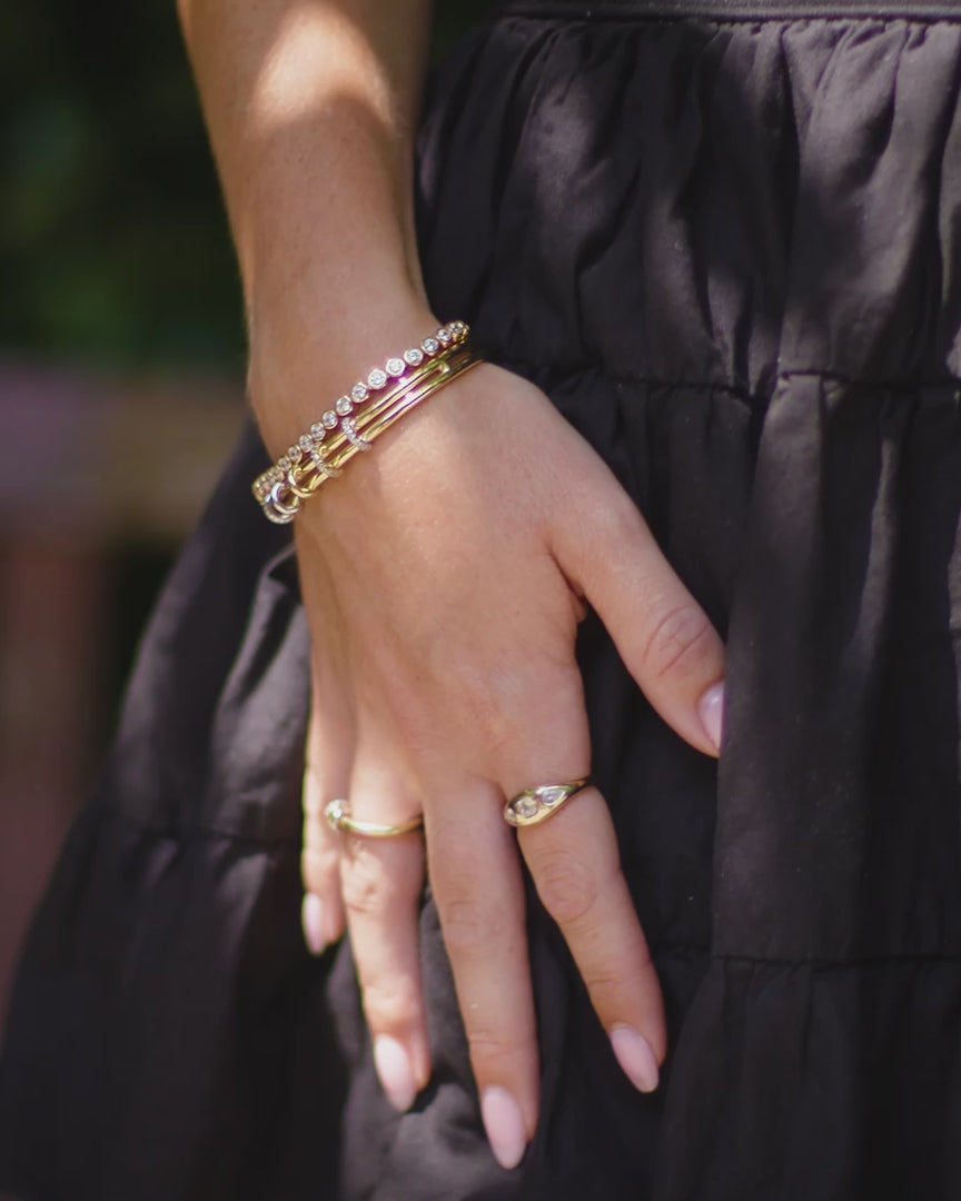 A refined mixed-metal design, the Hinge Cuff features a combination of gold and silver rings for a subtle, modern contrast. Finished with a seamless hinge for easy wear, it brings structure and movement to any stack. Crafted in 925 sterling silver with a thick layer of 14KT gold plating for a polished, lasting finish.