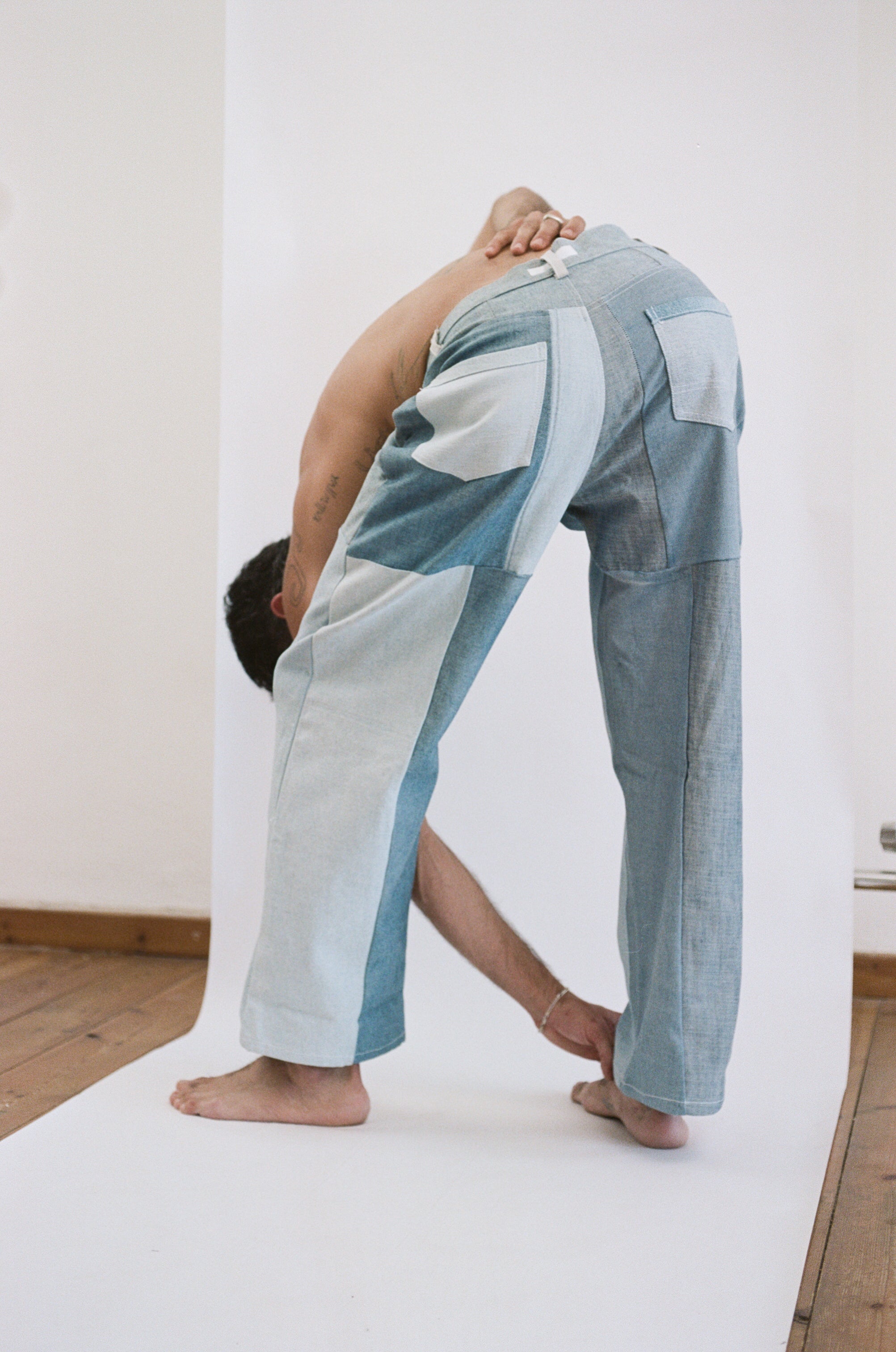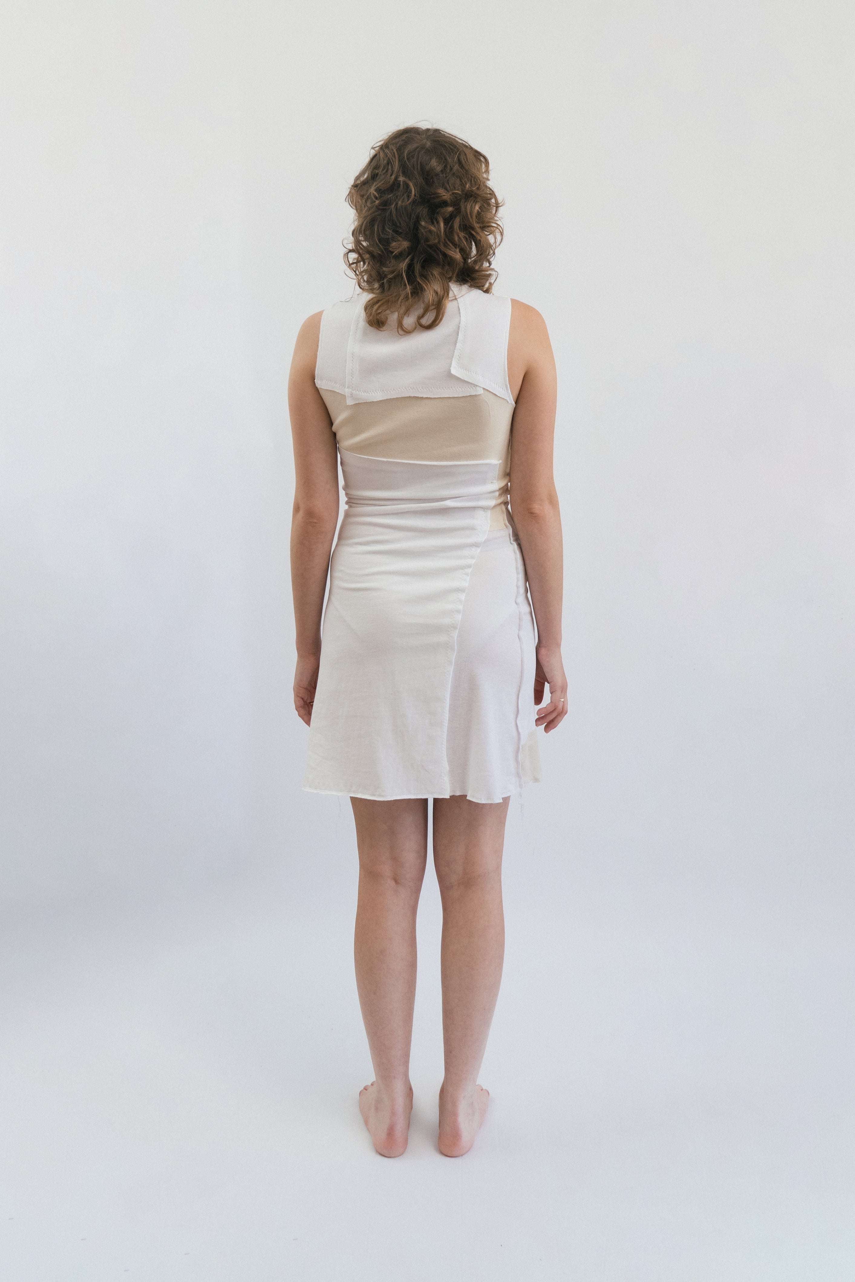 Experimental, reconfigurable garments designed to be worn in multiple ways, encouraging personal expression and evolving silhouettes. Crafted from reclaimed materials and naturally dyed using urban waste, each piece reflects a resourceful, circular approach to design.