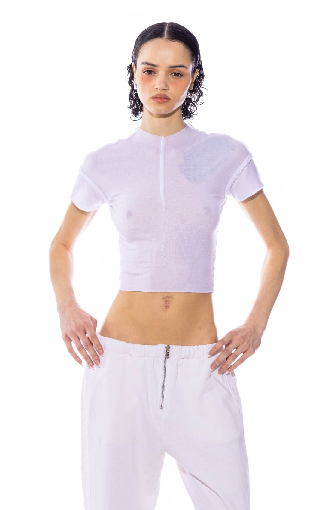 RAW CREWNECK BODYSUIT IN WHITE RIB