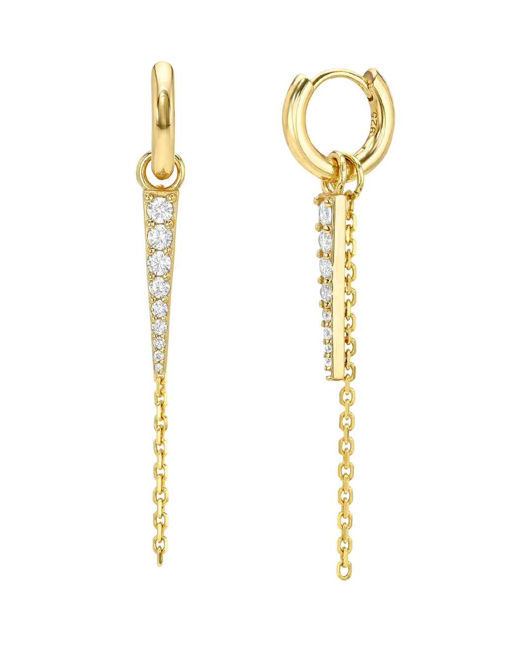 Designed for versatility, the Anchor Earrings feature two removable charms, a CZ spike and a rounded link chain, for multiple styling options. Wear them layered, minimal, or as a simple gold huggy depending on the moment. Crafted in 925 sterling silver with a thick layer of 14KT gold plating for a refined, lasting finish.