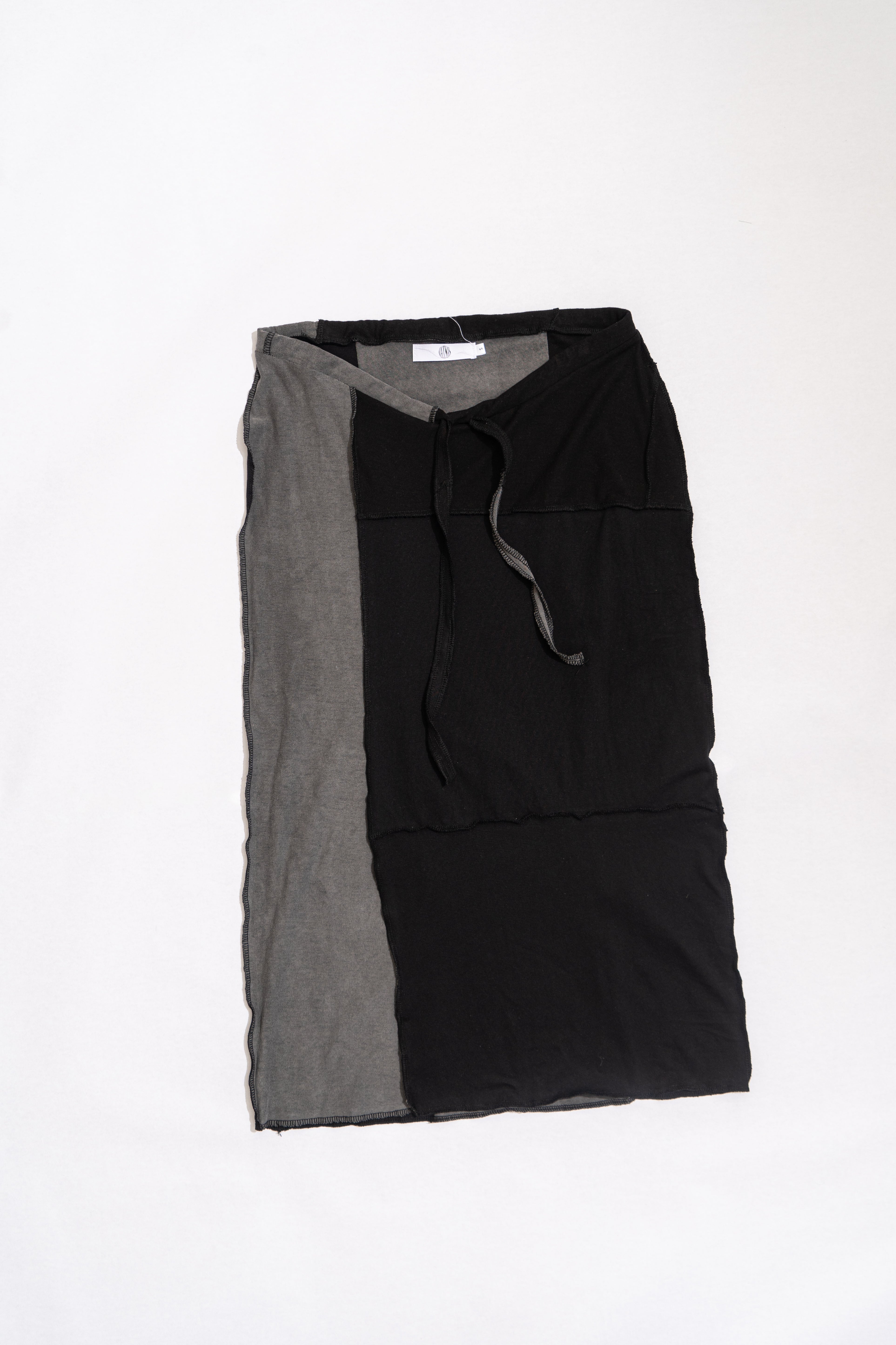 The low font skirt is a straight-cut midi with a subtle low-rise front and higher back for a balanced, flattering fit. Designed with an adjustable front drawstring and exposed serger seams, it can also be worn rotated for an asymmetrical silhouette. Crafted from patchworked upcycled knits, each piece is one of a kind with natural variations in fabric and finish. Selected for our Independent Studio edit, celebrating designers who create independently, with intention and a unique point of view.