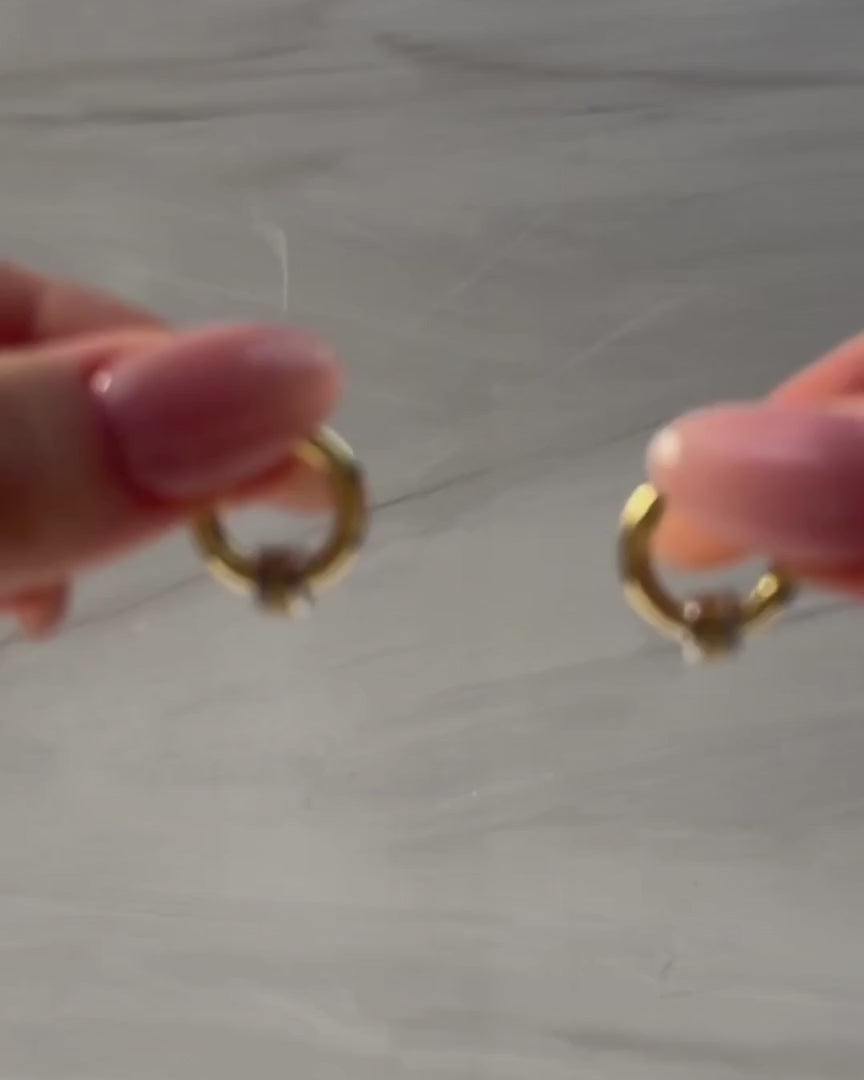 The Mini Joint Earrings feature removable mixed-metal charms for versatile styling. Wear them stacked for a two-tone look or remove the charms for a clean, everyday hoop. Crafted in 925 sterling silver with a thick layer of 14KT gold plating for a polished, lasting finish.