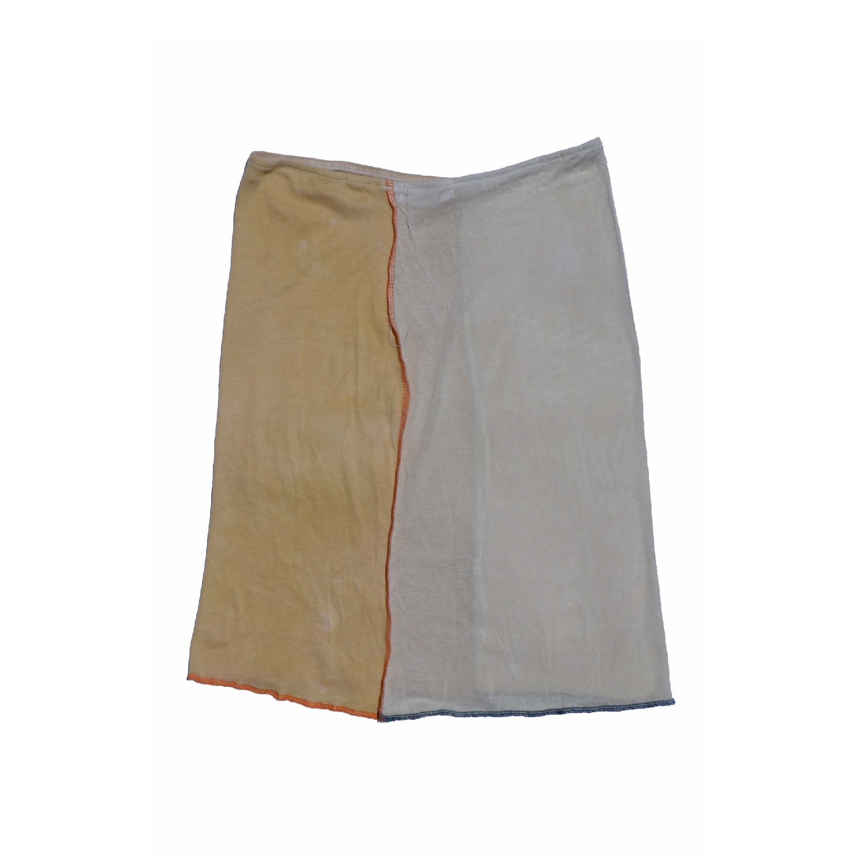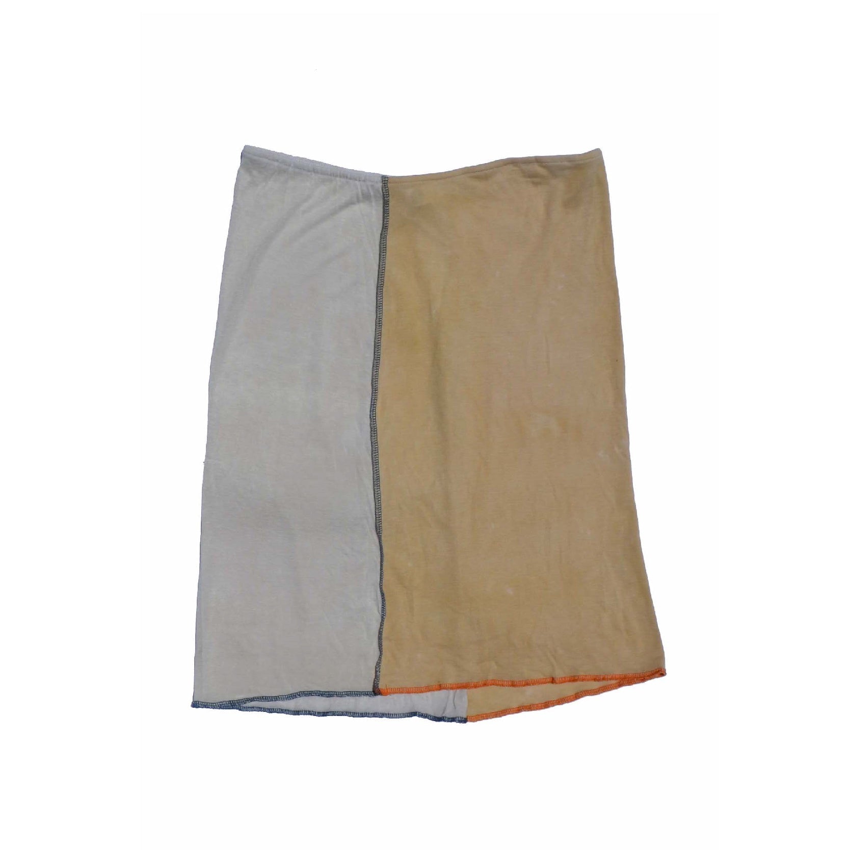 A form-fitting, two-tone mini skirt defined by contrasting panels and visible seams. Made entirely from upcycled materials, each piece is naturally dyed using organic waste like coffee grounds and onion peels. Variations in fabric, color, and construction make every skirt one of a kind. Selected for our Independent Studio edit, celebrating designers who create independently, with intention and a unique point of view.