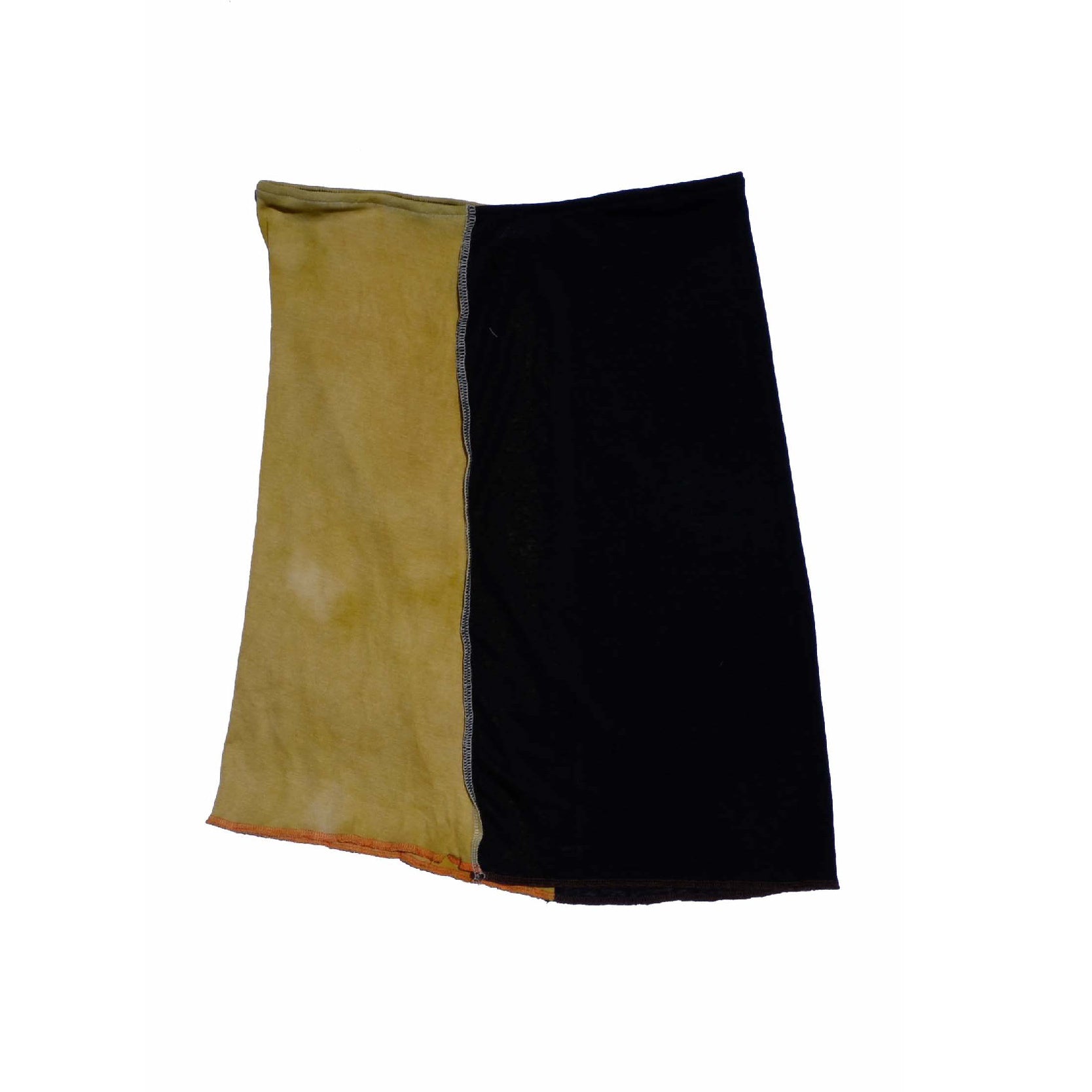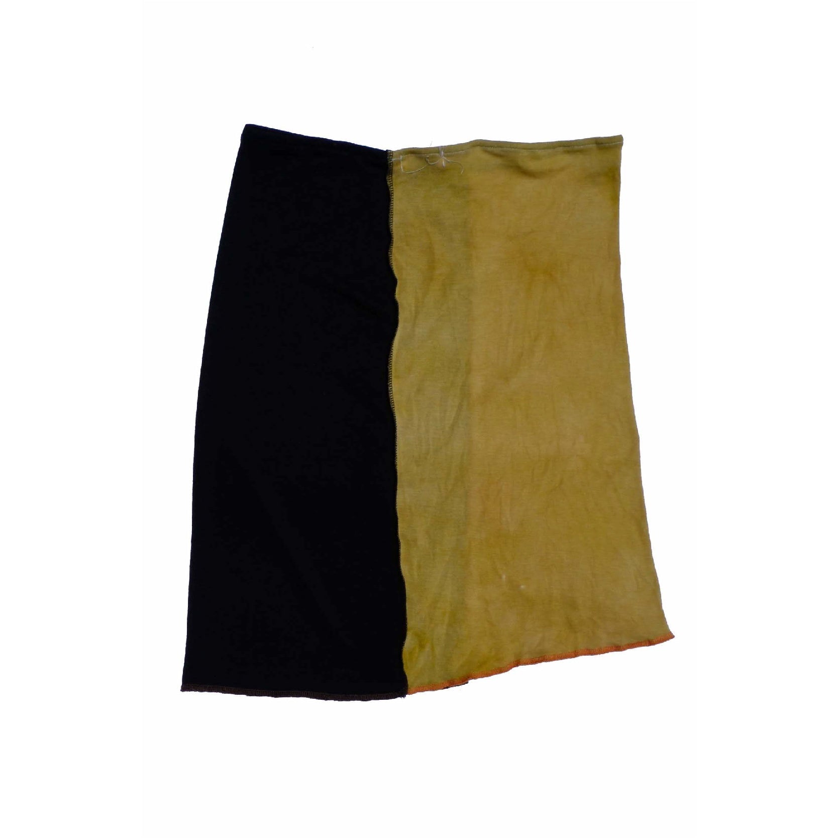 A form-fitting, two-tone mini skirt defined by contrasting panels and visible seams. Made entirely from upcycled materials, each piece is naturally dyed using organic waste like coffee grounds and onion peels. Variations in fabric, color, and construction make every skirt one of a kind. Selected for our Independent Studio edit, celebrating designers who create independently, with intention and a unique point of view.